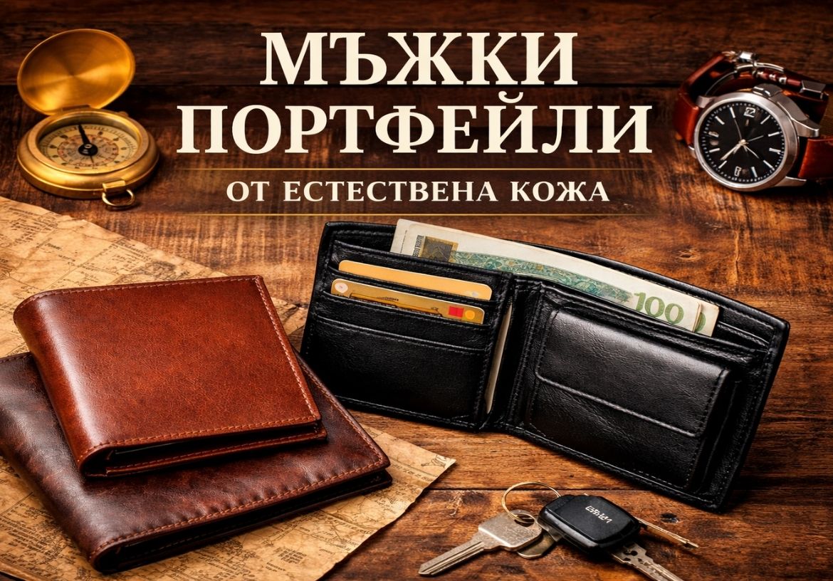 Мъжки портфейл от естествена кожа тъмно син марков