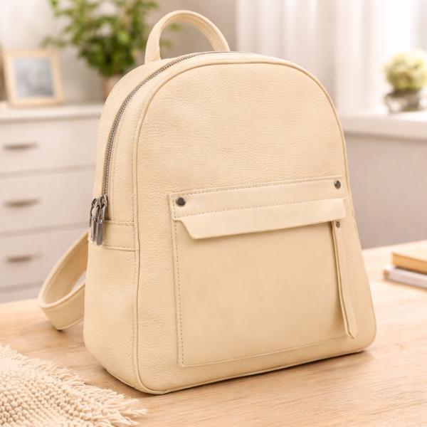 Стилна раница от еко кожа с изчистен дизайн – светъл цвят