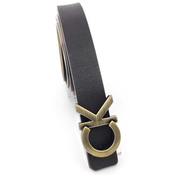Дамски колан от естествена кожа - Черен със златиста катарама