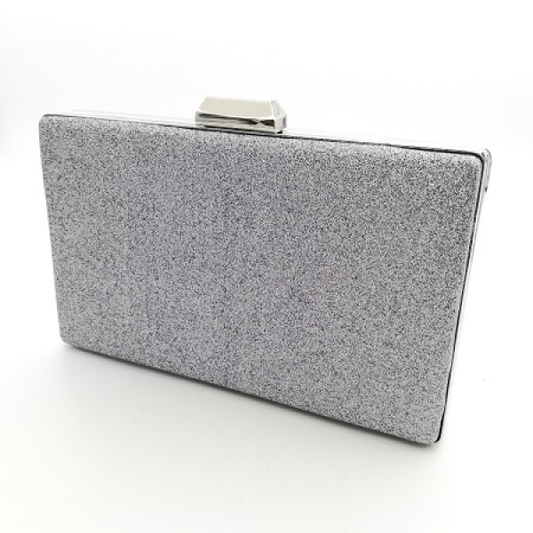 Дамска чанта тип клъч вечерна официална обсипана със сребрист брокат