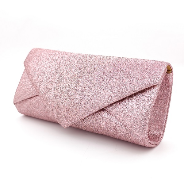 Клъч, официална дамска чанта тип плик в розово с брокат