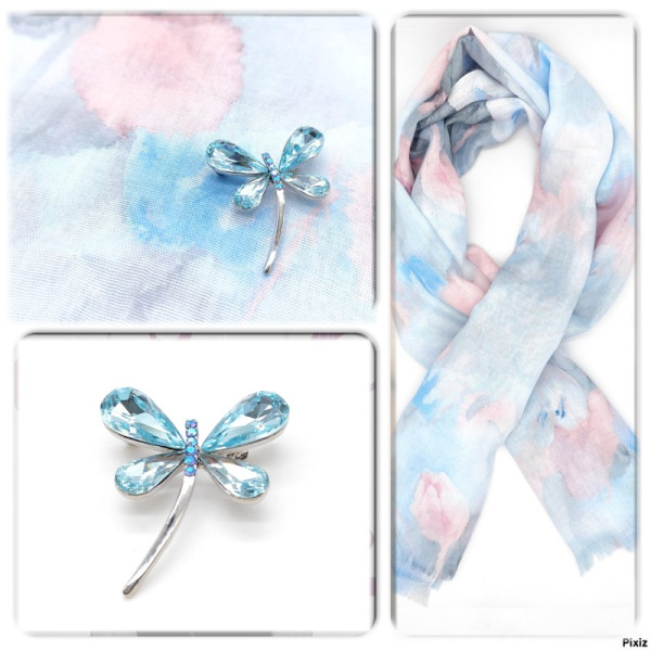 Комплект шал с брошка "Нежна свежест" – луксозен подарък за жена