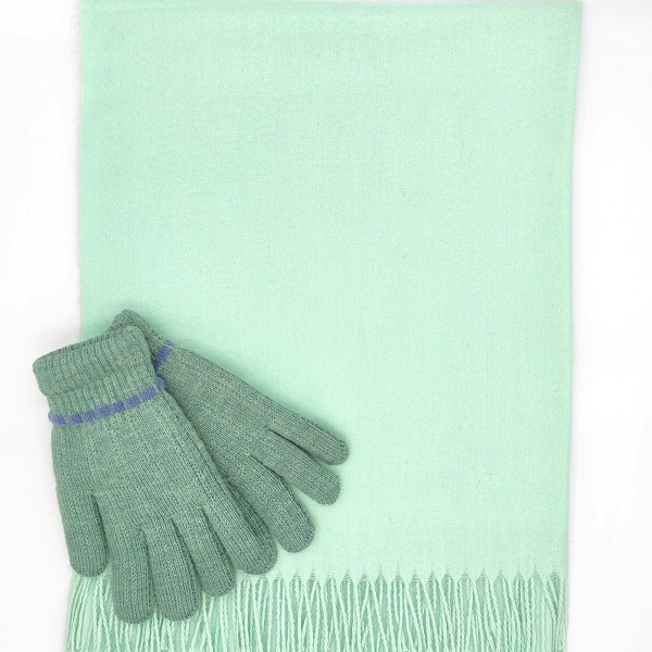 Шал и ръкавици в цвят мента – стилен зимен комплект, подходящ подарък за тийнейджърка