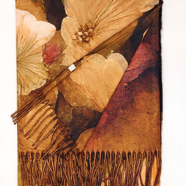 Шалът е изработен от мек кашмир с флорален десен, съчетаващ изисканост и комфорт.