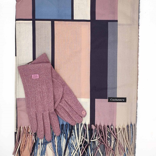 Кашмирен шал на фигури и елегантни ръкавици-Дамски зимен комплект в лилаво