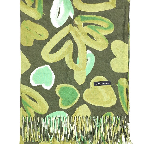Луксозен дамски зимен комплект в зелено със сърца-Кашмирен шал и ръкавици