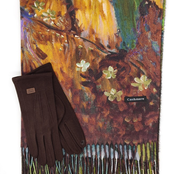 Луксозен кашмирен шал и ръкавици в кафяво-Дамски зимен комплект
