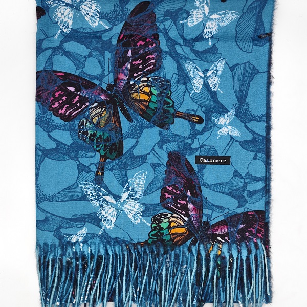 Син луксозен с цветни пеперуди