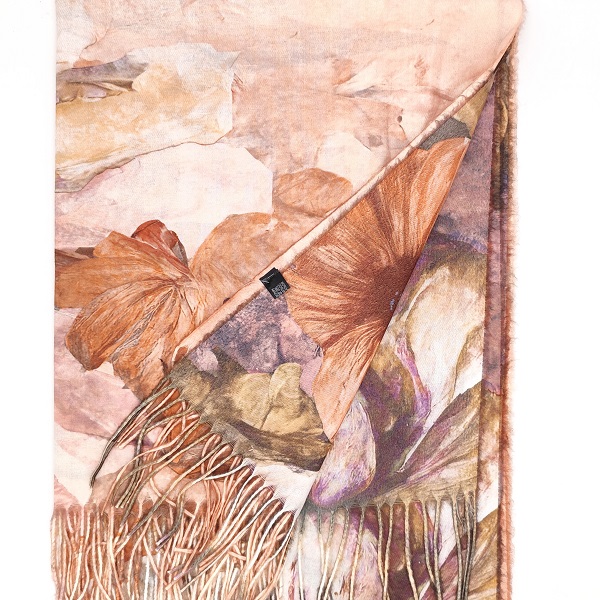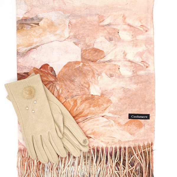 Луксозен зимен комплект в бежово-Кашмирен шал и ръкавици с пухче