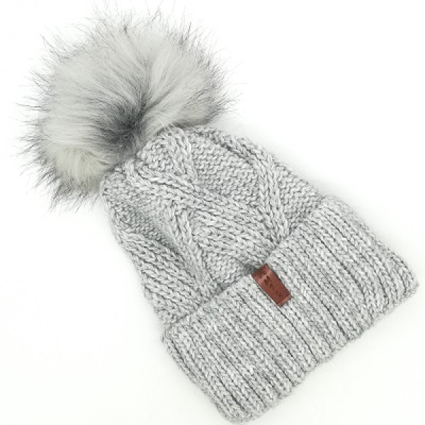 Шапката е с голям пухкав помпон в сиво
