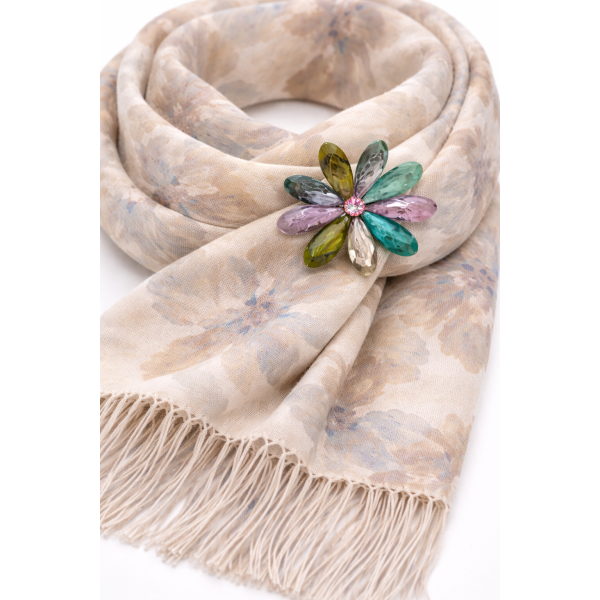 Бежов шал и брошка цвете-Дамски комплект