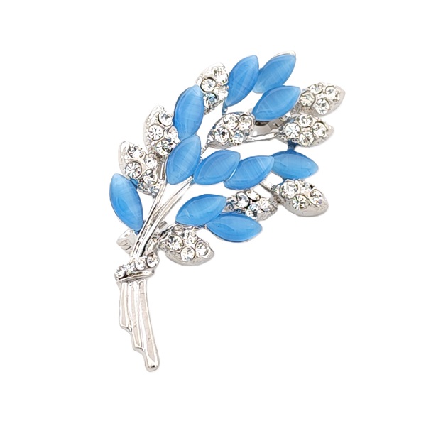 Нежна и изискана брошка с форма на клонче със сини листа и прозрачни кристали, създадена да придаде стилен акцент към всеки тоалет. Сребристият обков и блясъкът на кристалите я правят подходяща както за ежедневни, така и за официални облекла.