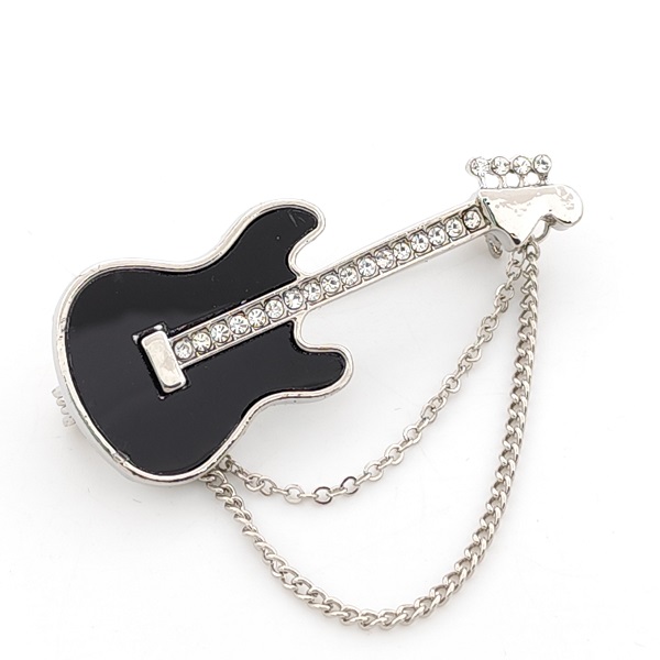 Стилна брошка във формата на китара, изработена с внимание към детайла – перфектен избор за дами, които обичат музиката. Комбинира блясък и артистичност, като подчертава индивидуалността и творческия дух на притежателката си.