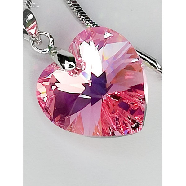 Колие сърце с кристал Сваровски в розов цвят с ефекти и отблясъци.