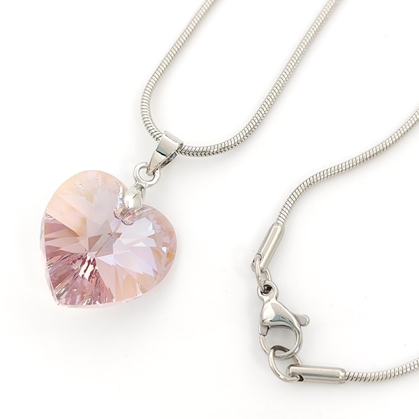 Колието е снабдено с изящен синджир с дължина 45 см, изработен от медицинска стомана – материал, известен със своята издръжливост и устойчивост на износване. Синджирът е антиалергичен, което го прави идеален за хора с чувствителна кожа, осигурявайки комфорт и спокойствие при носене. Сребристият цвят на синджира създава перфектен контраст с нежно розовия кристал, допълвайки неговата красота и подчертавайки елегантността на бижуто.