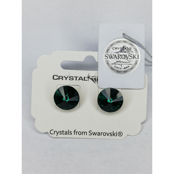 Обеци на винт с кристали SWAROVSKI RIVOLI Emerald 12мм