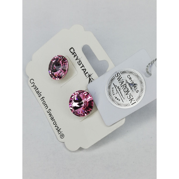 Обеци на винт SWAROVSKI RIVOLI розови Light Rose 12 мм