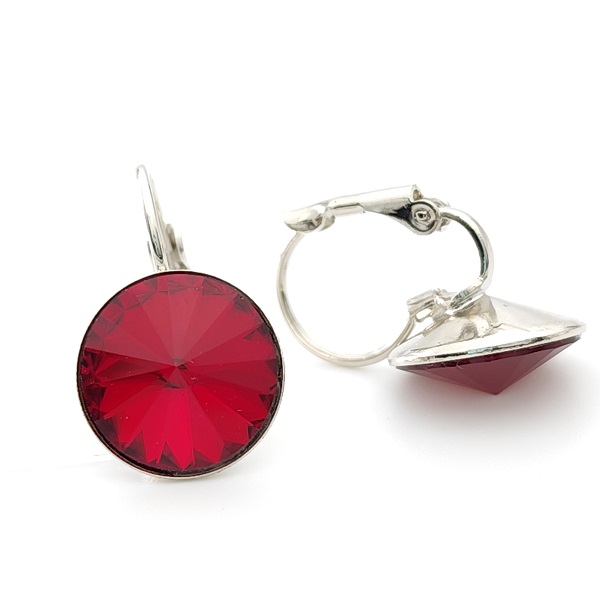 Висящи обеци с кристали Сваровски Siam-Червени 12 мм