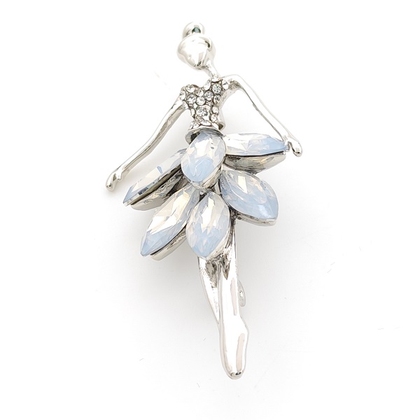 Брошка балерина в бяло със сребрист обков и бели камъни