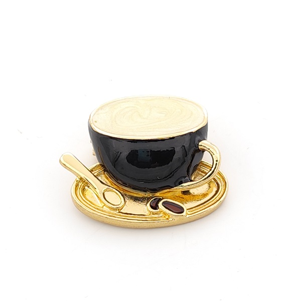 Брошка чаша за кафе и лъжичка в черно и златисто