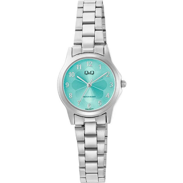 Дамски часовник Q&Q с метална верижка – сребрист с циферблат в тюркоаз