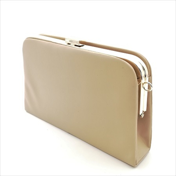 Официална чанта клъч изработен от еко кожа в бежово и златист обков
