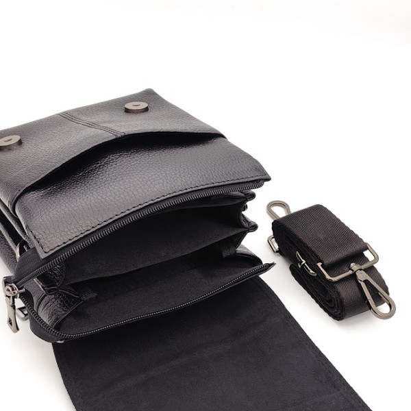 Мъжка кожена чанта през рамо с 3 отделения -Черна с капак
