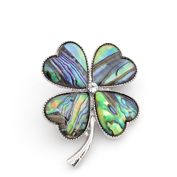 Носете късмет и стил с тази изящна четирилистна детелина брошка с кралски седеф. Впечатляващите многоцветни отблясъци на седефа са съчетани със сребрист обков и малко бяло камъче в центъра, което придава допълнителен блясък. Символиката на четирилистната детелина – щастие, любов, вяра и надежда – превръща тази брошка в не просто аксесоар, а и в оригинален подарък за жена със смисъл.