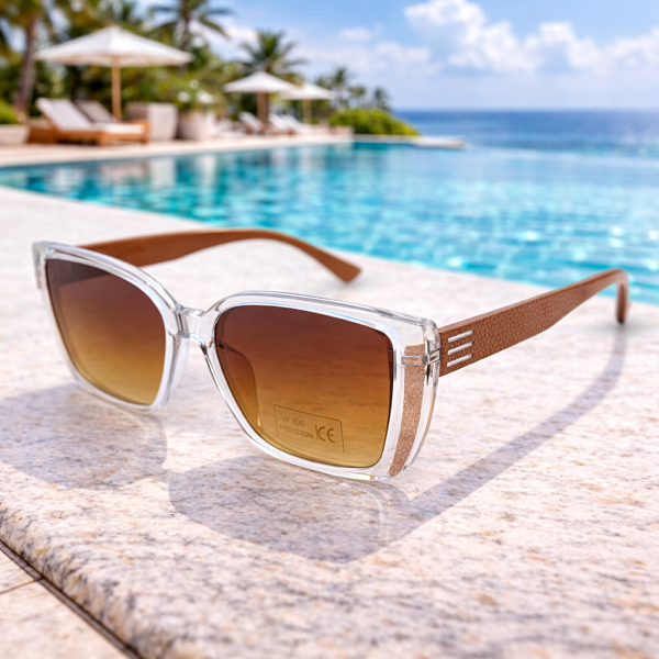 Модерен стил с топъл акцент – тези дамски слънчеви очила квадратни се отличават с прозрачна рамка и кафяви цветни стъкла, които придават елегантност и лекота на визията.