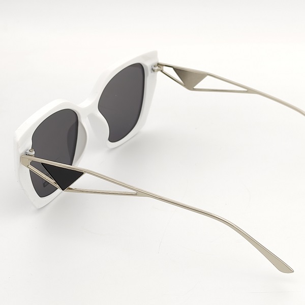 Екстравагантният дизайн на тези слънчеви очила включва интересни дръжки от сребрист метал, които придават уникален и луксозен вид на модела. Белият цвят на рамката е символ на свежест и чистота, перфектно съчетан със сребристите дръжки за ефектен и стилен завършек.