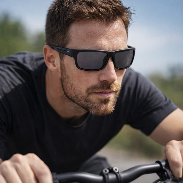 Моделът е със спортна рамка в черен и сив цвят и тъмни поляризирани лещи, които осигуряват добра видимост и стилна визия.