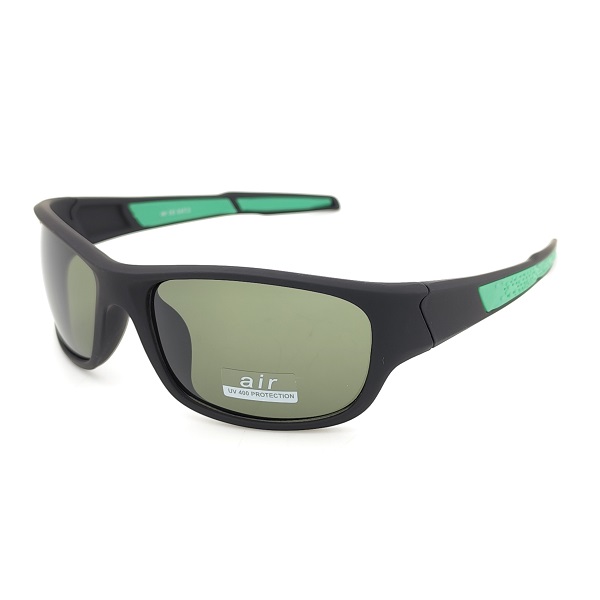 Спортни слънчеви очила мъжки UV400 – черен мат със зелен акцент