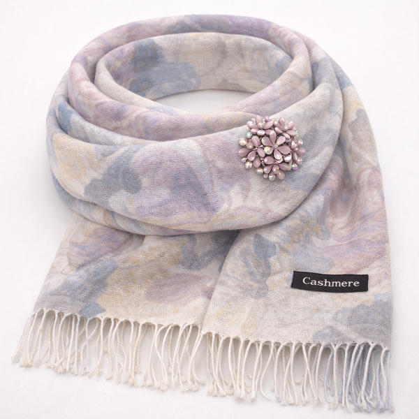 Стилен дамски комплект шал и брошка в лилаво