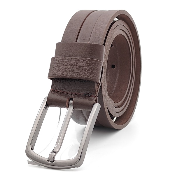 Стилен мъжки колан тъмно кафяв интересен дизайн-естествена кожа