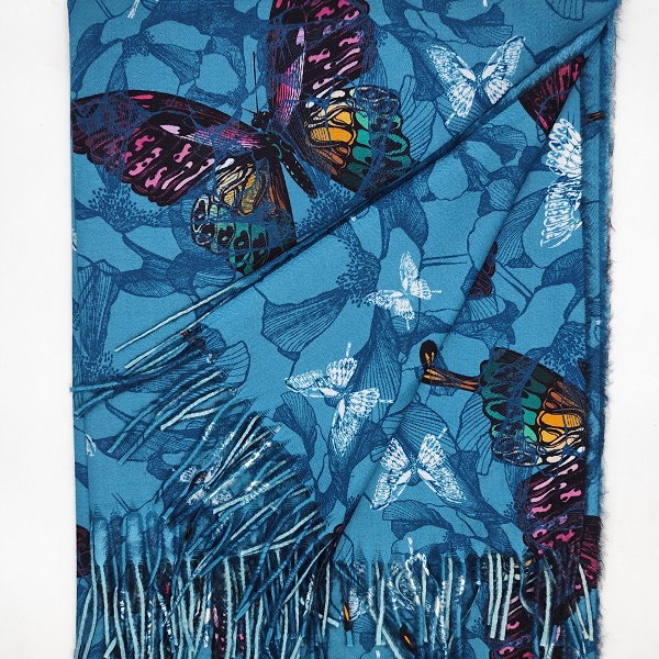 Зимен дамски комплект кашмирен шал с пеперуди и луксозни ръкавици