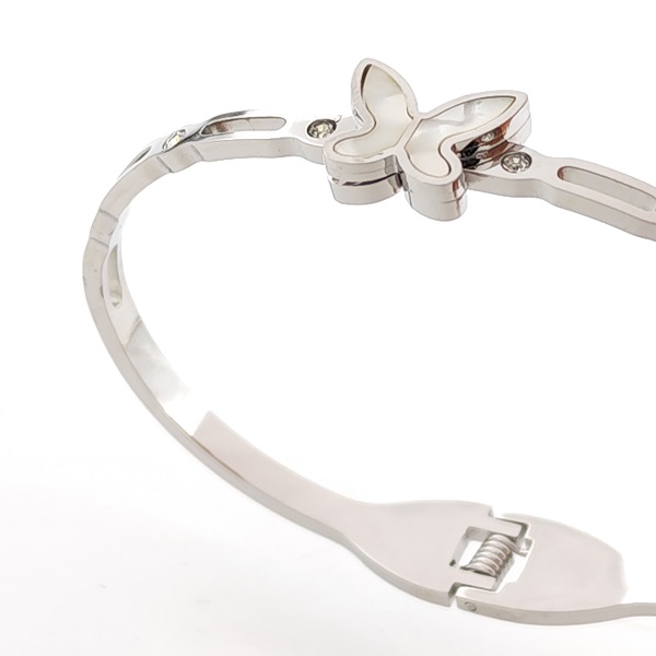 Стилна дамска гривна от медицинска стомана с пеперуда и кристали, твърда тип бенгъл