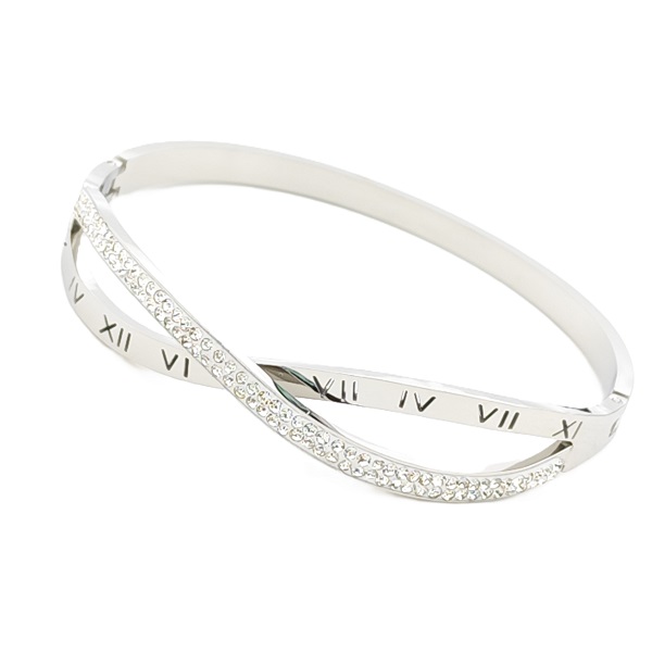 Стилна дамска гривна от медицинска стомана с римски цифри и камъни