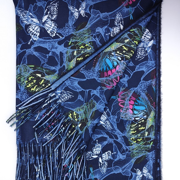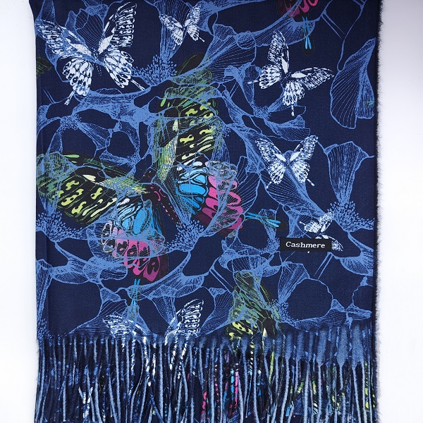 Кашмирен шал, шапка и ръкавици в синьо-Дамски комплект