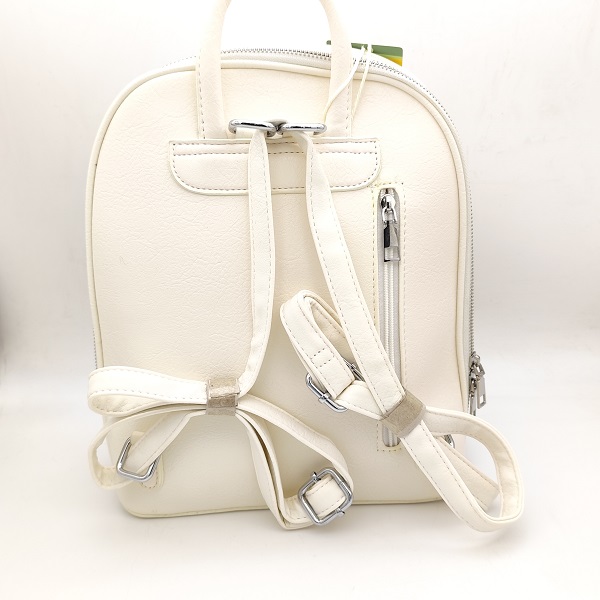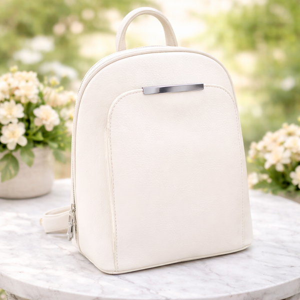 Дамска кожена раница в бяло с метална лайсна