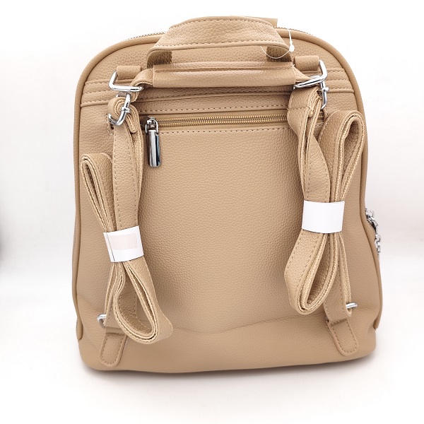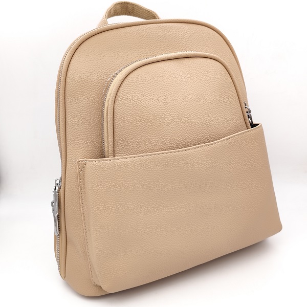Дамска раница в бежов цвят от еко кожа с външен обемен джоб