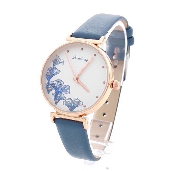 Дамски часовник в синьо с цветя