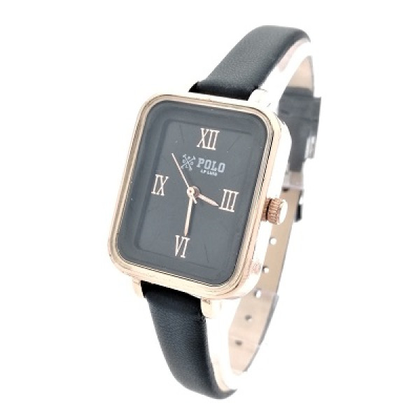 Дамски часовник в черно с квадратен циферблат и римски цифри POLO