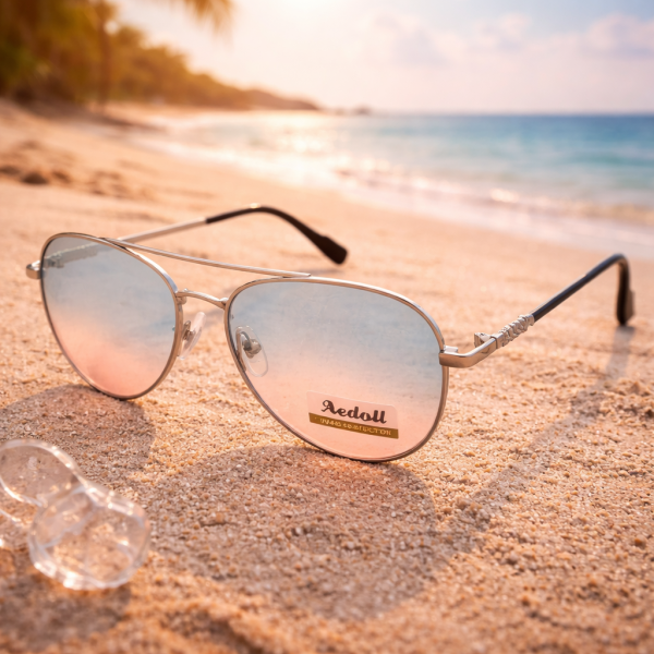 Лекота и елегантност в един дизайн – тези дамски слънчеви очила авиатор се отличават със сребриста метална рамка и светли цветни стъкла с нежен градиент, които придават фин и стилен вид.