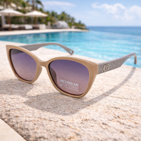 Фин стил и нежно излъчване – тези дамски слънчеви очила котешко око впечатляват с голяма форма и бежов цвят, които придават елегантност и лекота на всяка визия.