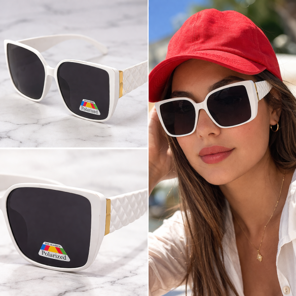 Дамски слънчеви очила квадратни – бели поляризирани очила с UV защита