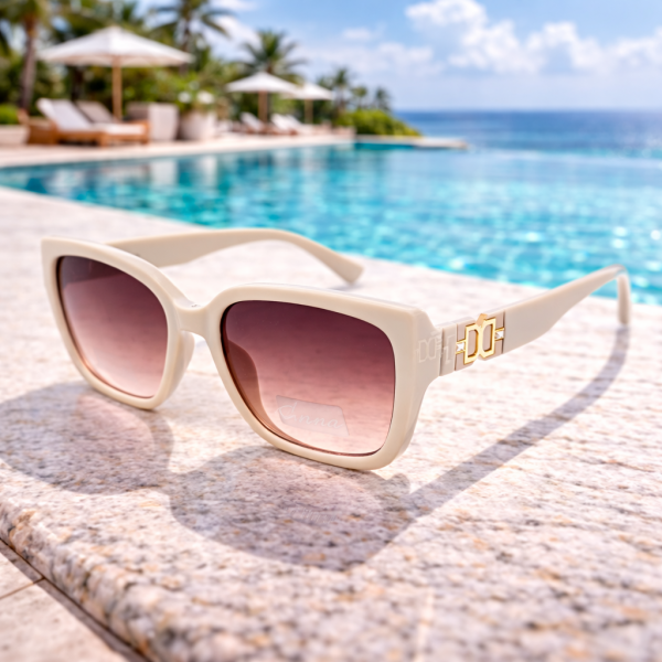 Дамски слънчеви очила квадратни Ivory – големи бежови с цветни стъкла и UV защита