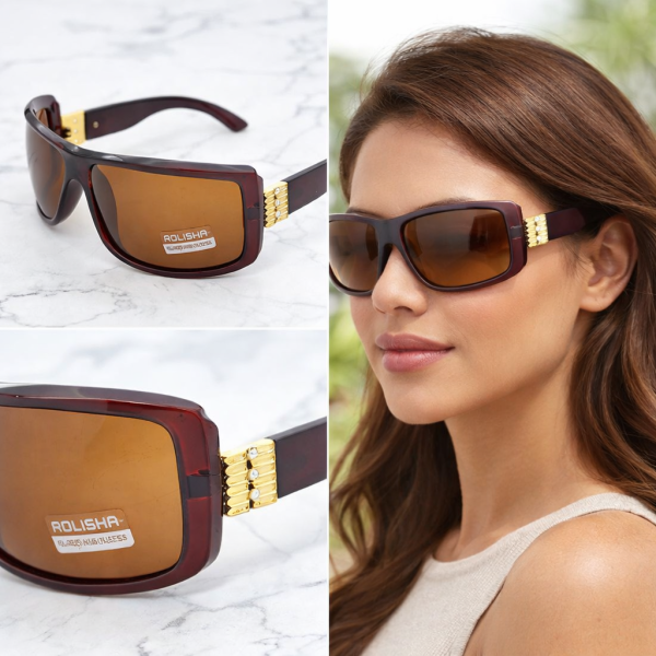 Дамски слънчеви очила тип маска – кафяви поляризирани очила с UV защита