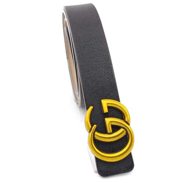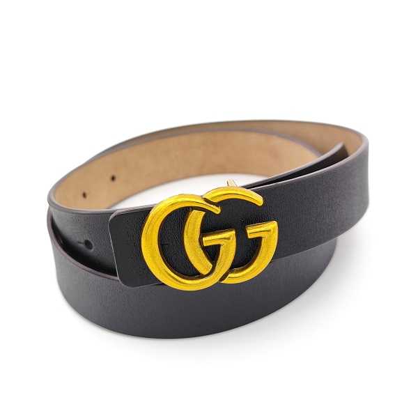 Изберете нашите дамски колани от естествена кожа и внесете лукс и елегантност във вашето ежедневие с тази великолепна реплика на черен колан с метална златиста катарама.