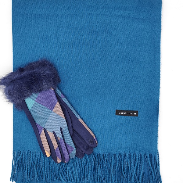 Шал и ръкавици в петролно синьо – Стилен зимен подарък за жена