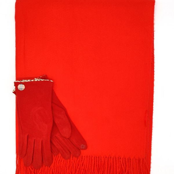 Шал и ръкавици в червено – елегантен зимен комплект, подходящ за подарък